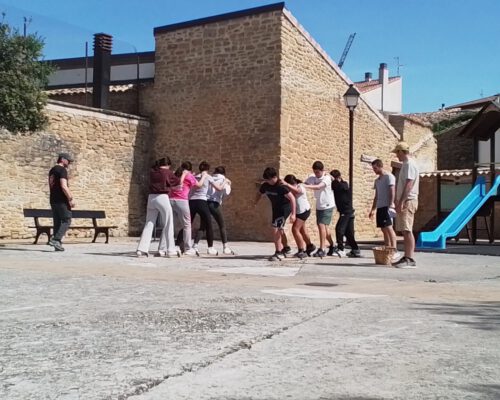 Más tarde tocó moverse. Nos acercamos a los juegos populares vascos, una forma divertida y diferente de hacer ejercicio. Hubo risas, trabajo en equipo y también algún que otro momento de competición sana. Una manera genial de conocer tradiciones a través del juego.