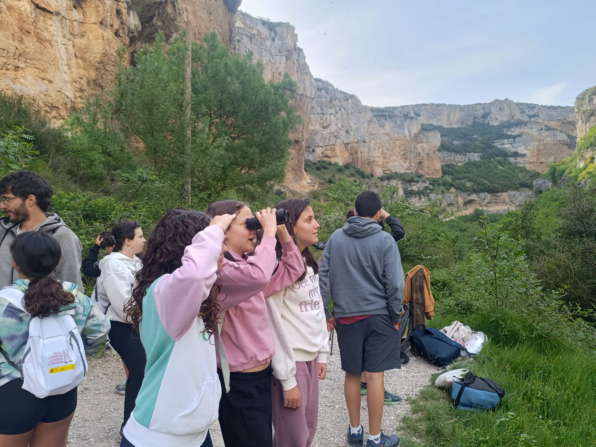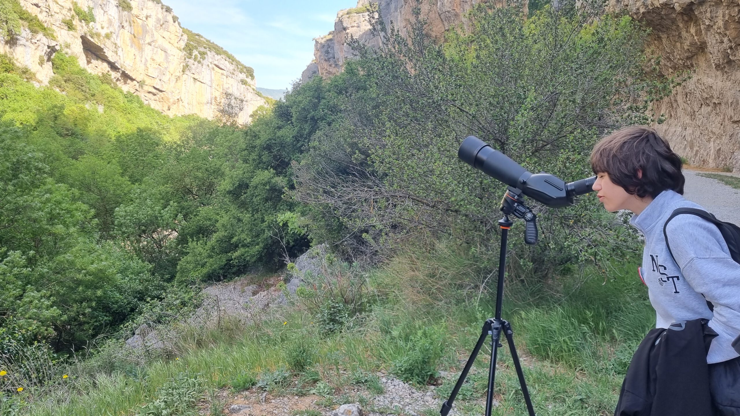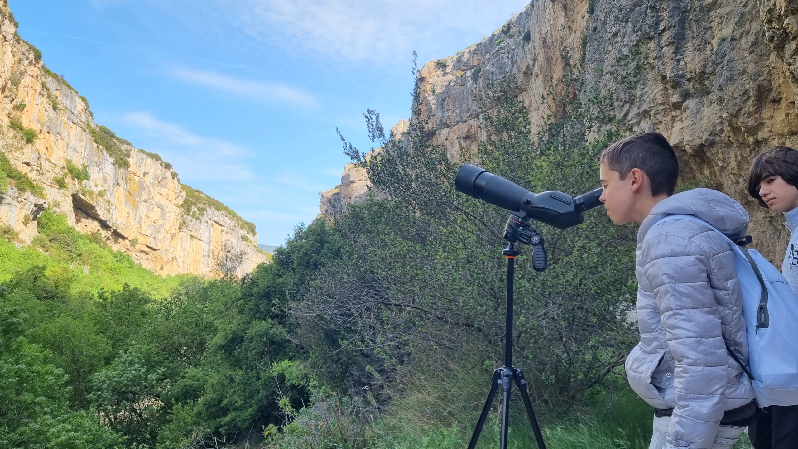 Además, hemos levantado la vista y el cielo nos ha regalado un espectáculo: buitres planeando sobre la foz y, en lo alto de los cortados, sus “buitrajos”, los nidos donde todo comienza.