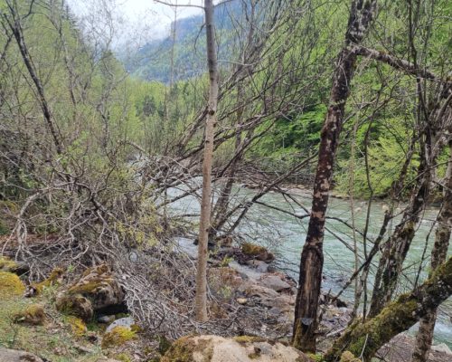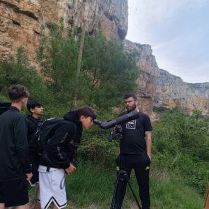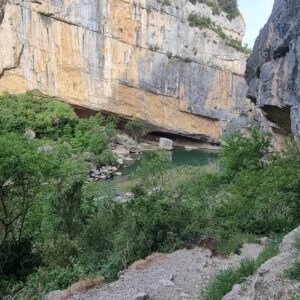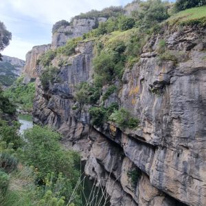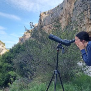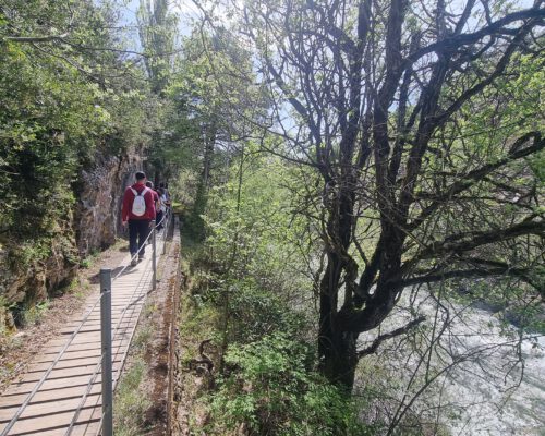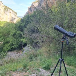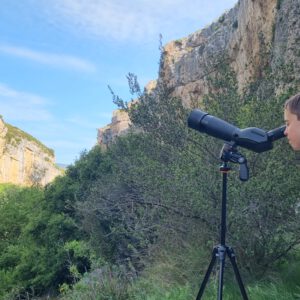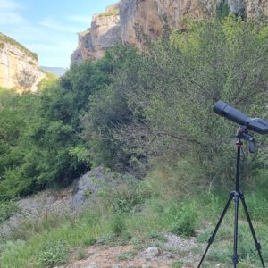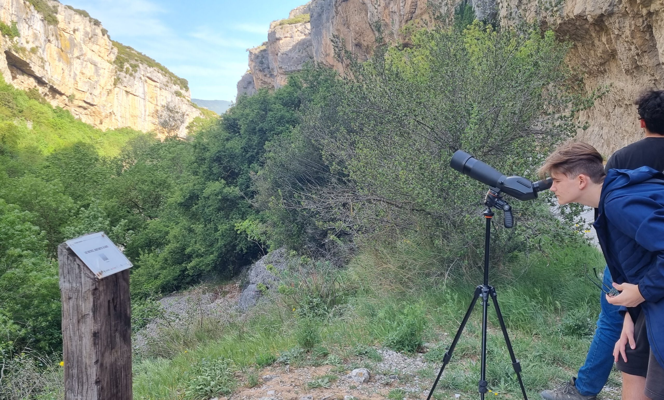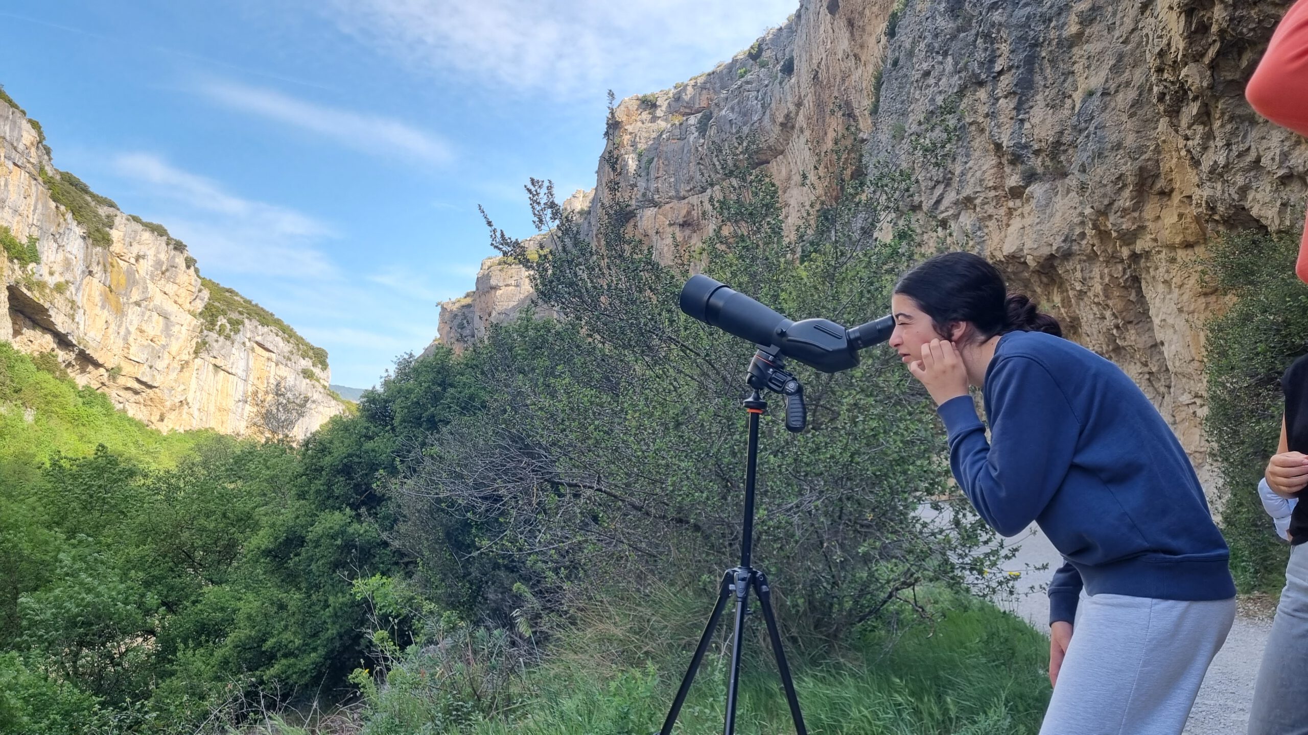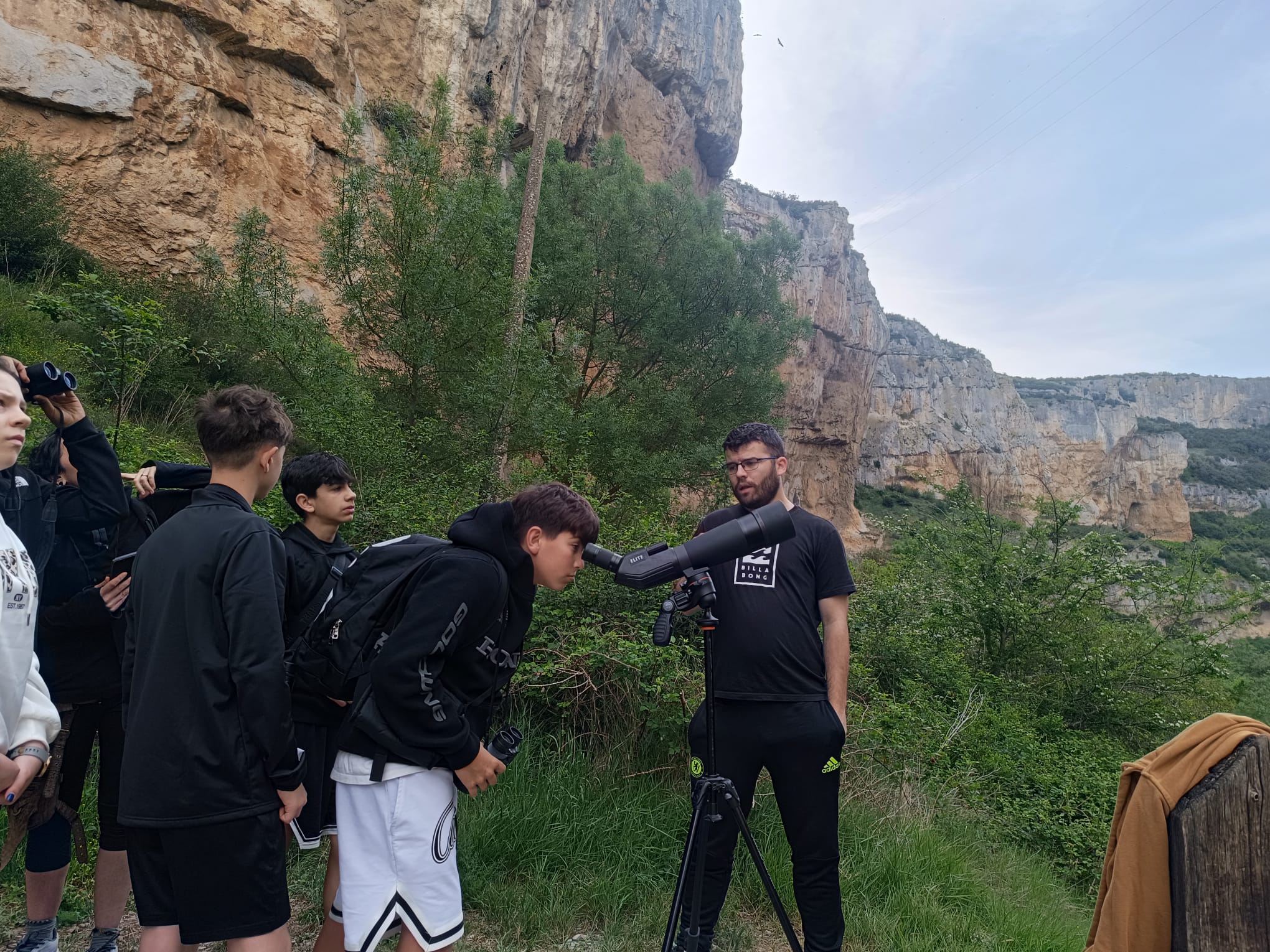 Además, hemos levantado la vista y el cielo nos ha regalado un espectáculo: buitres planeando sobre la foz y, en lo alto de los cortados, sus “buitrajos”, los nidos donde todo comienza.