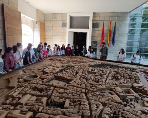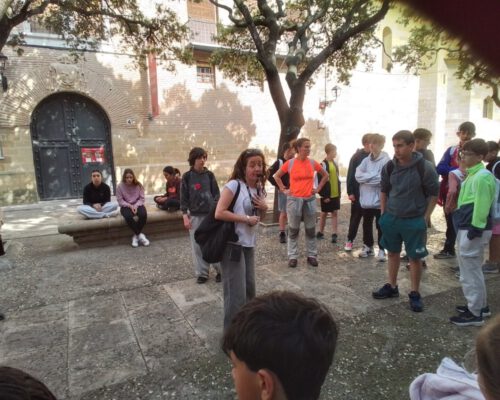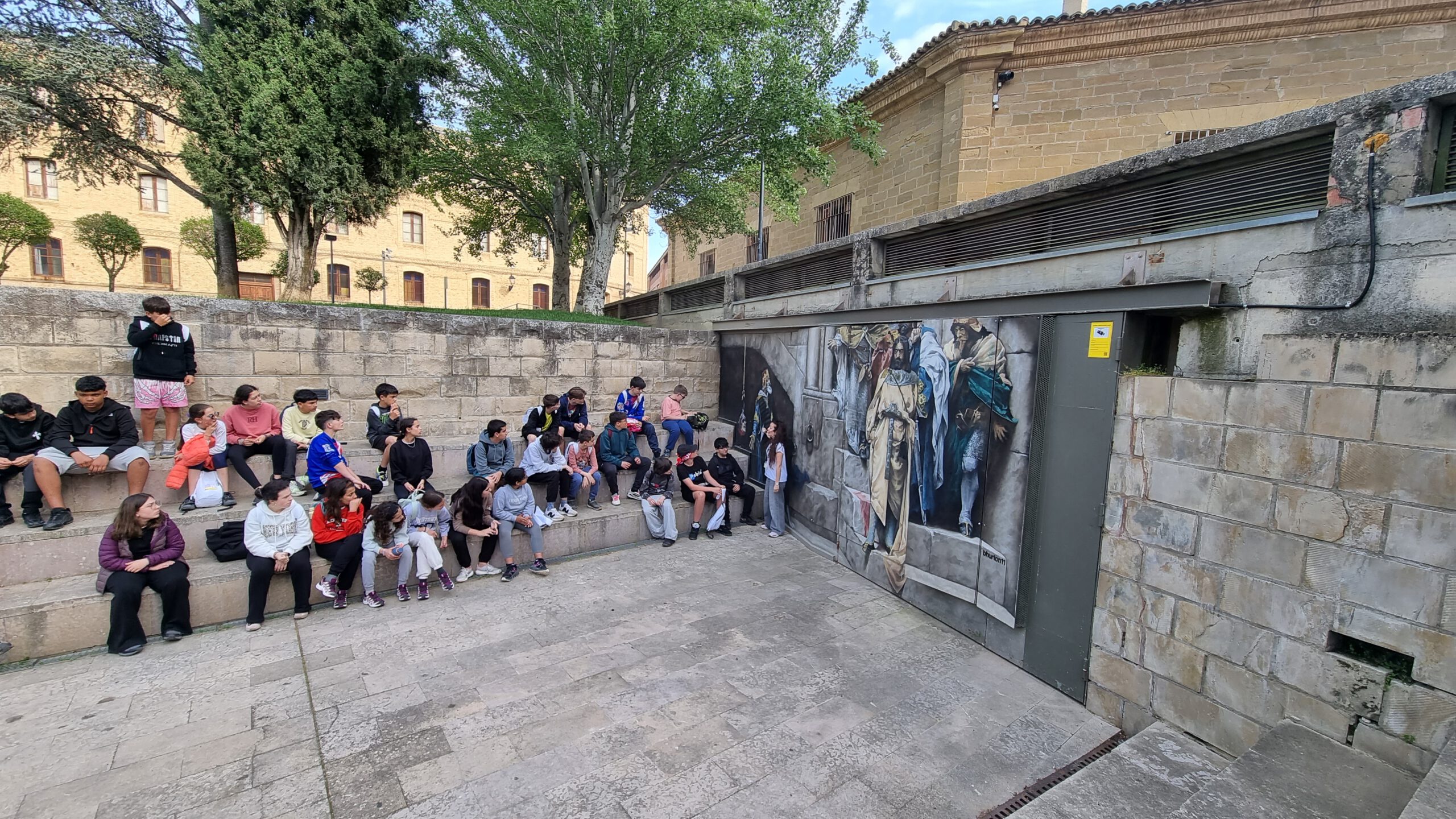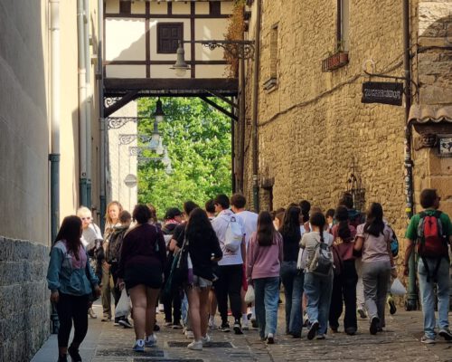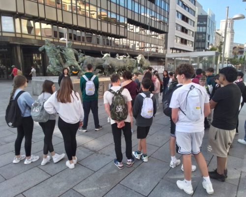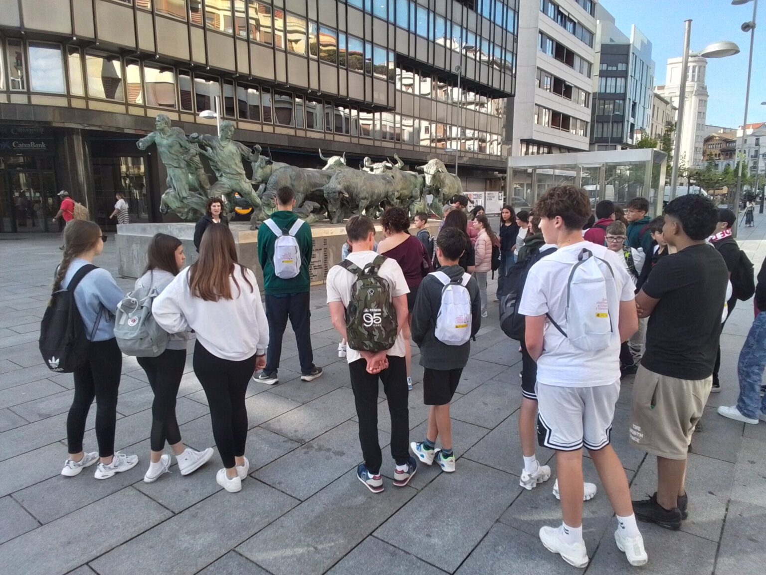 La mañana comenzó con una visita guiada por el casco histórico de Iruña. No nos quedamos en la superficie; los alumnos recorrieron las zonas más emblemáticas de los Sanfermines, analizando cómo una tradición de fama mundial ha moldeado la arquitectura y la identidad de la ciudad.