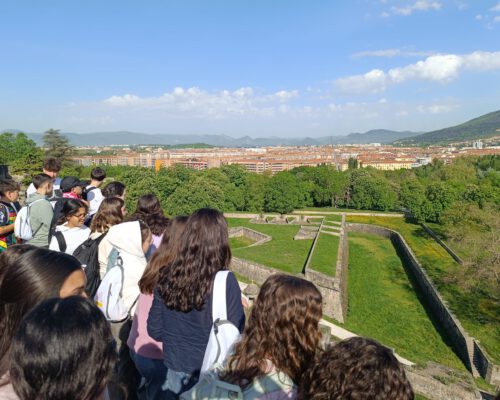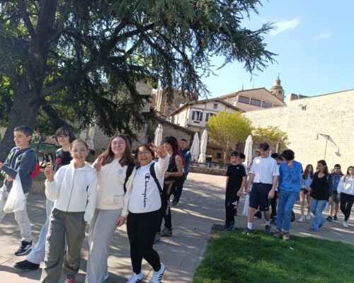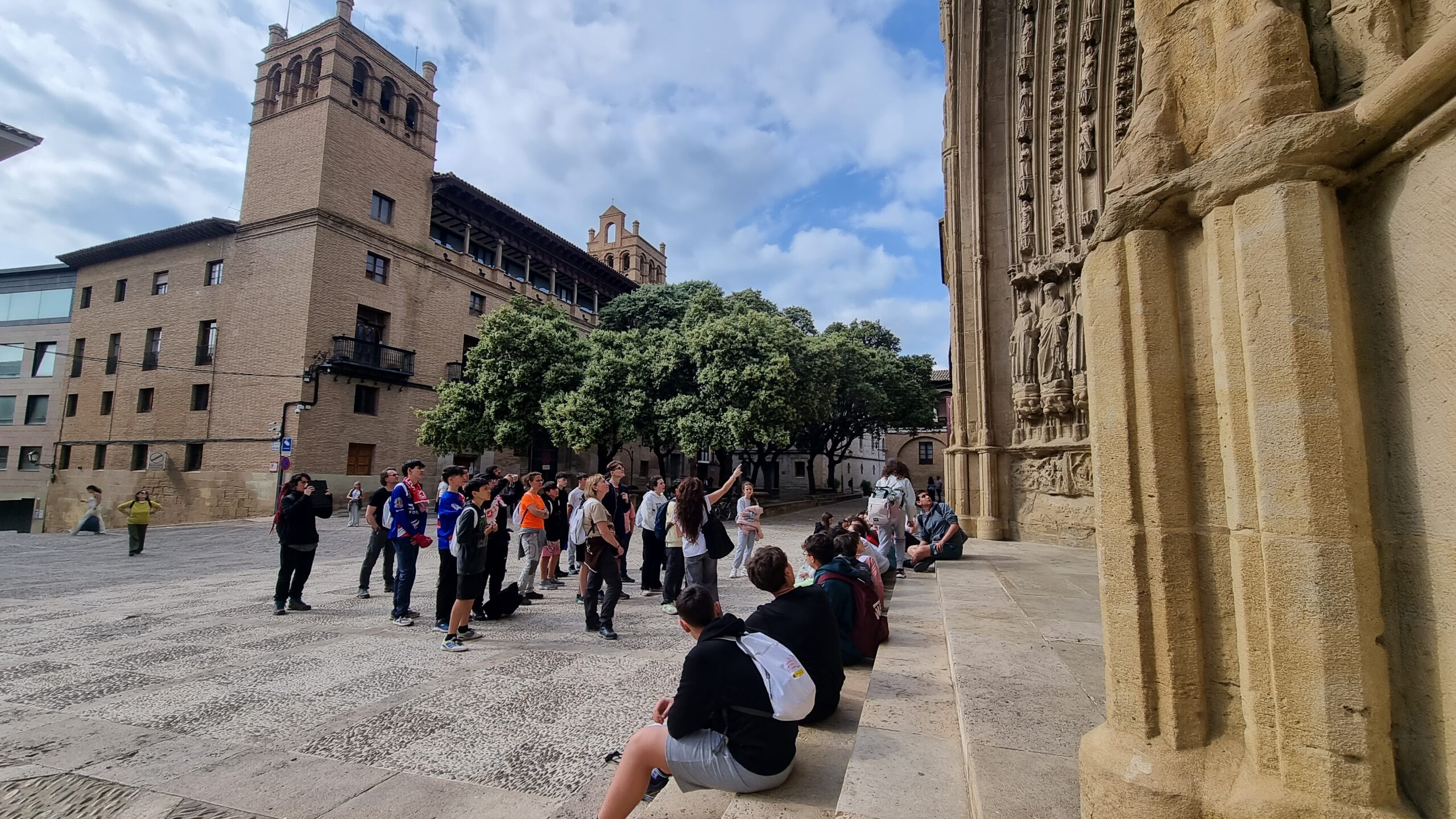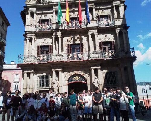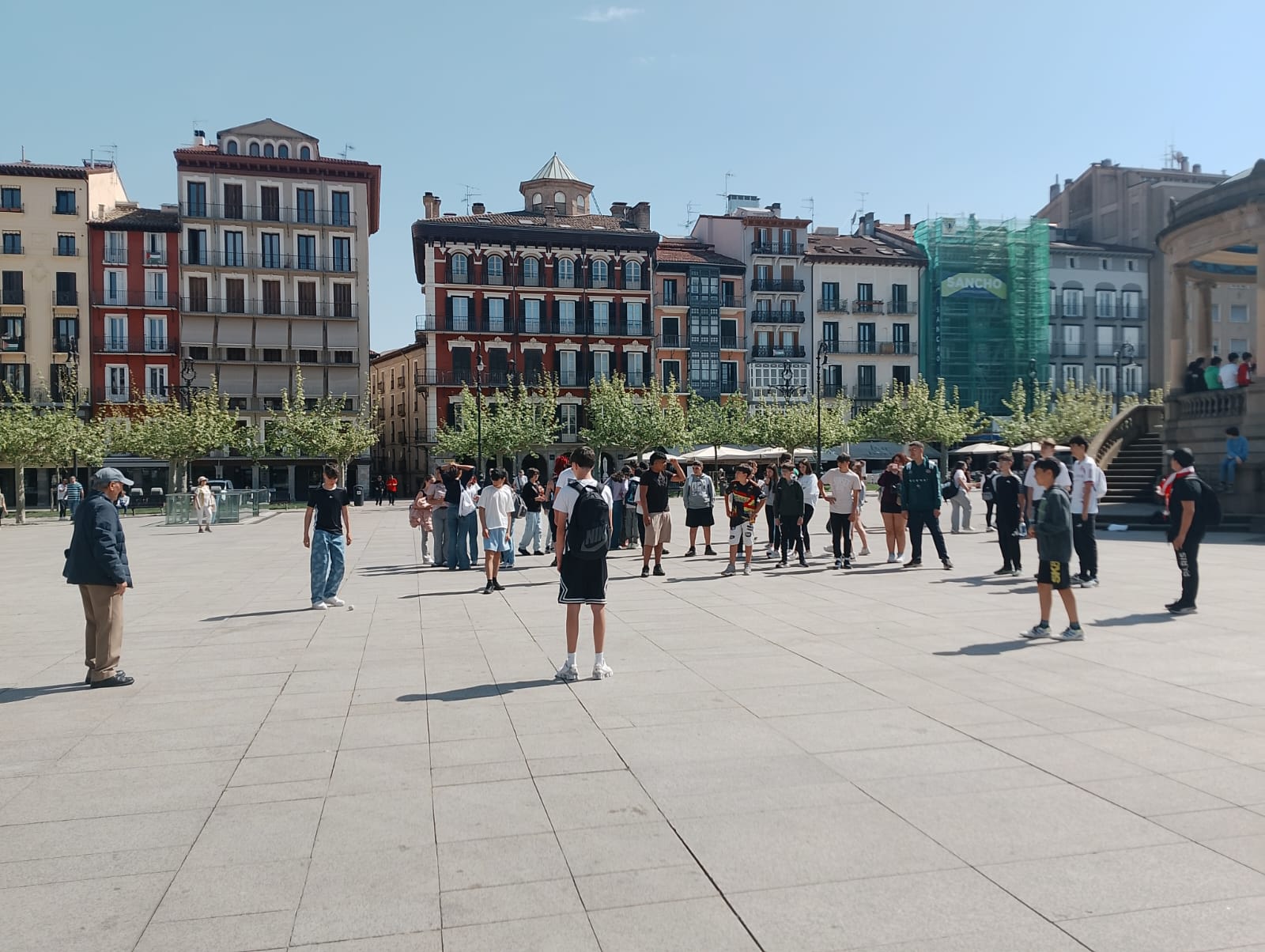 Nuestra primera parada ha sido la histórica ciudad de Pamplona. Entre maletas y presentaciones rápidas, por fin pusimos cara a los que serán nuestros compañeros de viaje durante toda esta semana: los chicos y chicas del IES Valle de Luna, que vienen desde Santa María del Páramo (León).