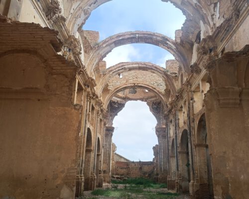 Con esta idea en mente, hoy hemos visitado Belchite Viejo, un lugar que impresiona desde el primer paso. Caminar entre sus calles en ruinas es recorrer un pasado que aún resuena en cada pared, en cada edificio derruido, en cada silencio.