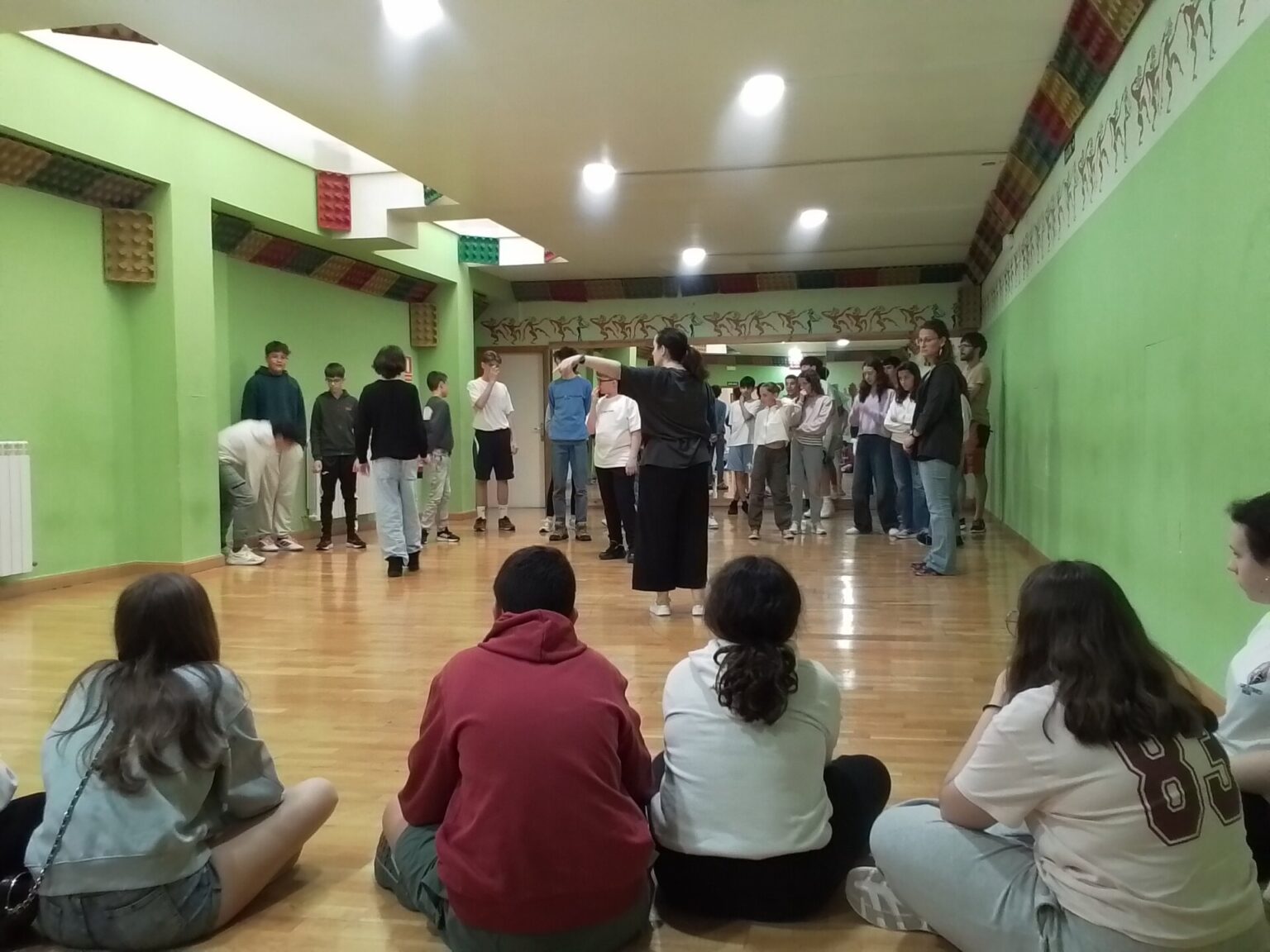 Taller práctico: Tras una breve resistencia inicial, los alumnos se soltaron con el «Chuguí». Trabajaron dinámicas de expresión y trabajo en equipo, experimentando que el teatro es, ante todo, una herramienta de comunicación y una extensión viva de la creación literaria.