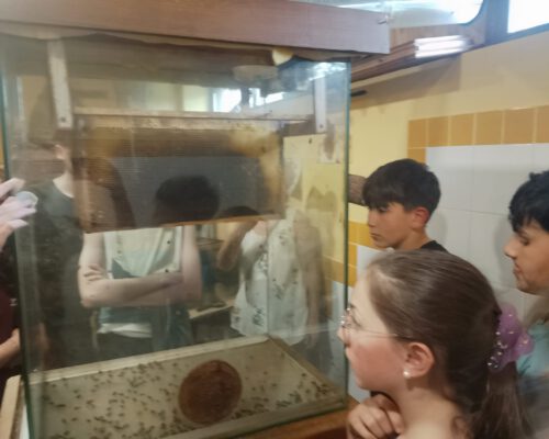 Finalmente, en el Ecomuseo de Ororbia descubrimos el huerto y entendimos mejor de dónde vienen muchos de los alimentos que consumimos. Pero, sin duda, uno de los momentos más interesantes fue acercarnos al mundo de las abejas: su organización, su importancia y todo lo que aportan al equilibrio del entorno.